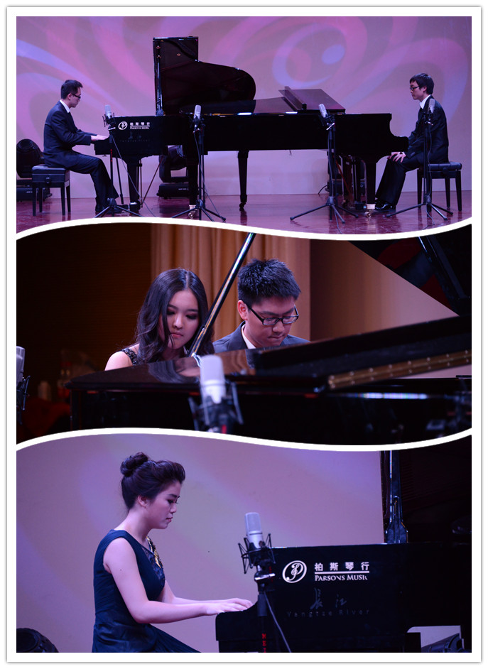 此外,晚会中还有着非常精彩的双排键表演《五千瓦电能》、《smoke on the water》,以及北京建筑大学的李智仙和戎岩分别为大家带来的《OP.10 NO.4肖邦练习曲》和《贝多芬悲怆奏鸣曲》。本次音乐会还为大家呈现了一首以由静到动的形式展现的,由两台钢琴和双排键共同演绎的马克西姆改编的《Victory》。这些精彩纷呈的演奏,赢得了观众阵阵的叫好声。最后,一首钢琴团的经典曲目——双钢琴协奏《保卫黄河》气势恢宏地收尾,为本次音乐会演出画上了一个充满激情的句号,演出在掌声中落幕,取得了圆满的成功。