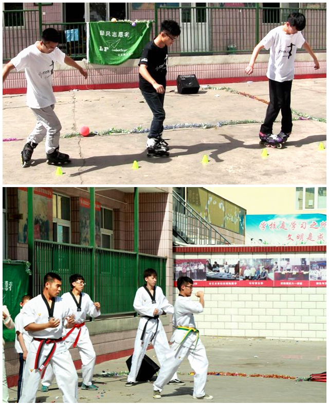 另外,为了给希望学校的孩子们带来一场不一样的联欢会,绿风还特别邀请了米兰milan官方网站“酷爱轮滑社”和“跆拳道协会”来参加我们的六一联欢会,这两个节目给会场带来了高潮,孩子们都被大哥哥大姐姐们精彩的表演所震撼,台下掌声雷动,经久不息。