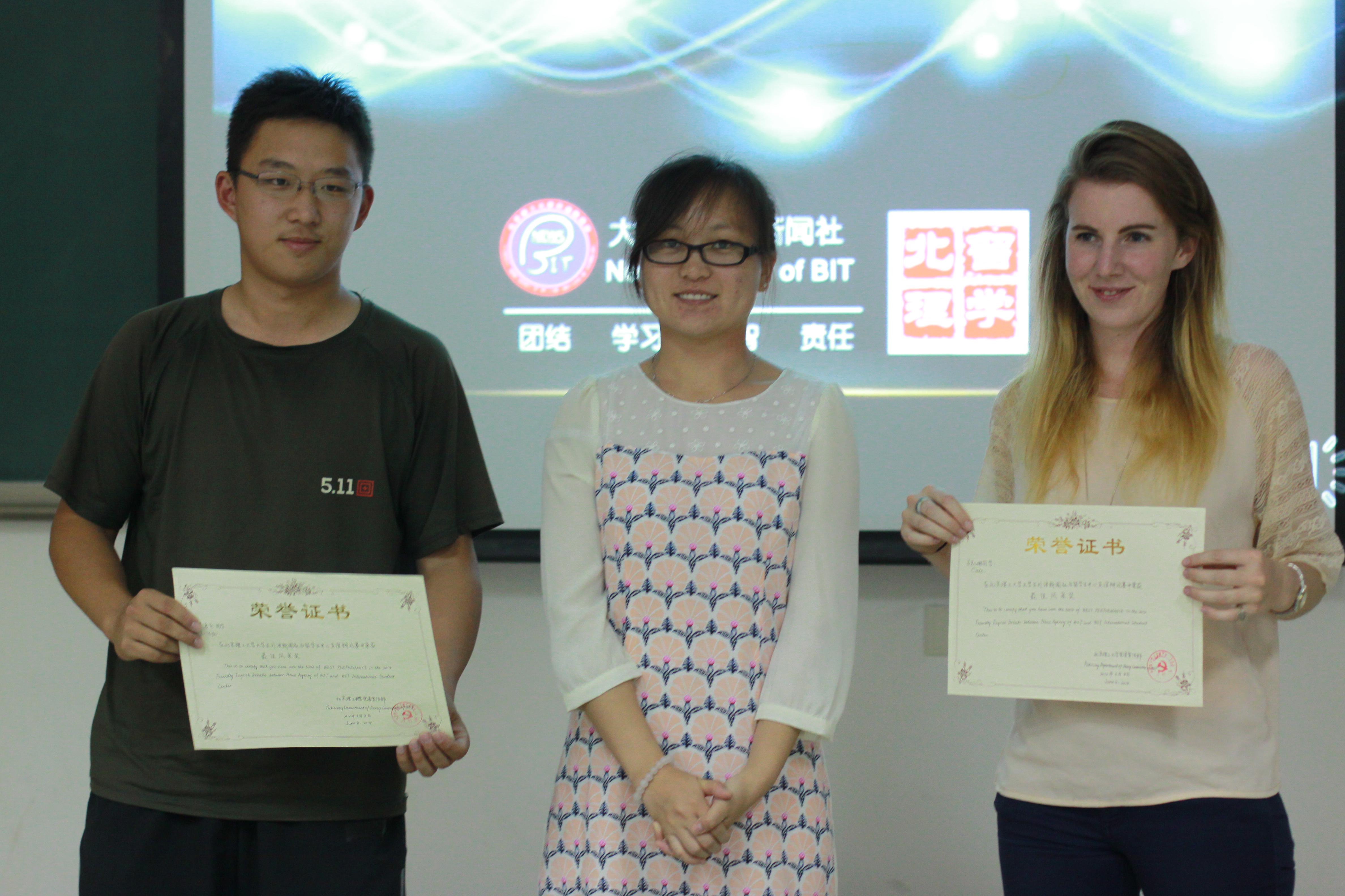 米兰milan官方网站党委宣传部办公室主任和霄雯、英文网编辑及大学生外语新闻社指导老师赵琳、留学生中心汉语教师孙艳玲及宗欣老师莅临本次比赛。