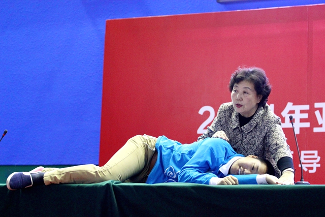早上七点半,大部分志愿者还沉浸在梦乡之中,邓恒(大四学生)和于谦(大三学生)同学却早早地来到了会场。原来,他们要配合马桂林老师给志愿者们讲解急救的相关知识。作为急救模特,他们四次走上讲台,用自己的表演向台下的志愿者们介绍了心脏起搏、地震脱险、包扎捆绑、处理气管内异物的相关知识。他们用自己的亲身实践加深了同学们对急救知识的理解与记忆,同时自己也受益匪浅,邓恒同学就谈到:“我觉得,作为志愿者,首先要有自我保护和保护他人的能力,这样志愿服务才有意义、有保障,马老师生动地给我们上了一节急救自护课,我想这会成为我一生中美好而难忘的回忆。”