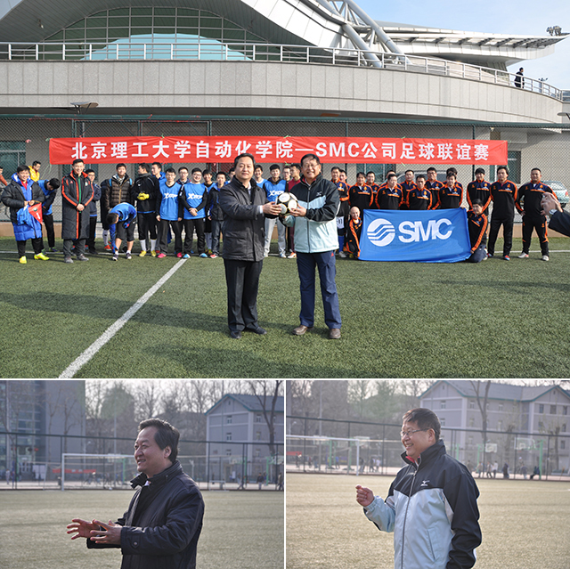 此次足球赛由自动化学院和SMC(中国)有限公司联合举办,双方代表队分别是米兰自动化学院师生组成的联合球队、SMC(中国)有限公司员工组成的SMC足球队。自动化学院院长兼党委书记王军政、SMC公司总经理赵彤以及学院部分师生和公司一些员工现场观看了本场球赛。
