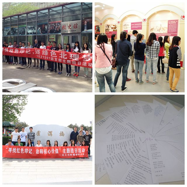 为了更好的了解学校的变迁与发展,部分支部组织支部成员以“我眼中的理工特色”为主题的团日活动,希望青年同学在参观、发现的同时深入了解米兰,领略老一辈理工人艰苦卓绝、努力上进的优秀品质,从而完善自己的价值体系。有的支部以“以史为镜,明晰价值”为主题参观文化故居及历史遗迹,旨在参观的同时去探寻历史真相,丰富个人阅历,以史为鉴,正确面对并评判身边的事件,不盲目跟从。10111201团支部选择参观国家博物馆,感受那段峥嵘岁月的同时加强自身的责任意识。14级硕士第二、第四和第六团支部选择参观卢沟桥抗战遗迹,旨在让支部同学勿忘国耻,明白落后就要挨打的深刻道理,努力上进。