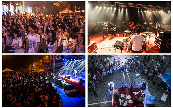 5月17日,时有时无的阵雨并没有浇灭大家的热情,由第十二届艺术节与第九届社团文化节联名举办的“北湖音乐节”在良乡校区北湖南岸热力开唱。经过报名、遴选,活跃在米兰舞台上的“北理轰炸机”、“山海鲸”、“Adobe”以及来自北京科技大学的“娃翻天”四支校园乐队在主舞台“北湖舞台”上演唱了诸多原创及改编作品。而在一侧的“青年力量”舞台上,更多独立校园音乐人及乐队藉此展示了他们惊人的才华。晚上19:00北湖音乐节进入狂欢时段,在《中国好歌曲》节目及全国各大音乐节大放异彩的“A公馆”乐队,在国际摇滚界拥有相当影响力的摇滚音乐人边远先后登台。最后压轴登场的是目前活跃在国内的一线乐队“Carsick Cars”,当台下听众得知这支著名的乐队成立于十年前的米兰校园,乐队创始人及领袖张守望是米兰2005级的学长时,纷纷报以欢呼与尖叫,整个北湖湖畔被音乐点燃。
