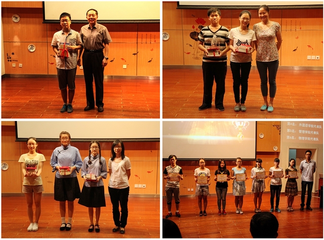 比赛环节结束后,姜楠老师对人文演绎环节各组的表现进行了简短的点评,随后主持人宣布各组得分。由于外国语学院代表队与机械学部代表队比分相同,比赛进入第四环节——终极PK环节。最终,机电学院代表队获得一等奖,人文学院代表队、机械学部代表队获得二等奖,外国语学院代表队、管理学院代表队及物理学院代表队获得三等奖。