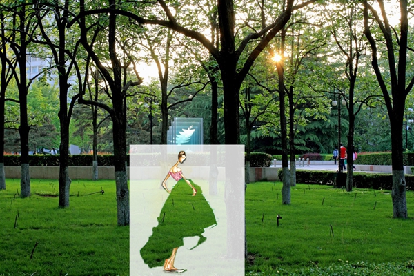 都说一日之计在于晨,嫩绿的草地,初升的太阳,明媚的女子拖着长长的绿色裙摆,缓步轻走。