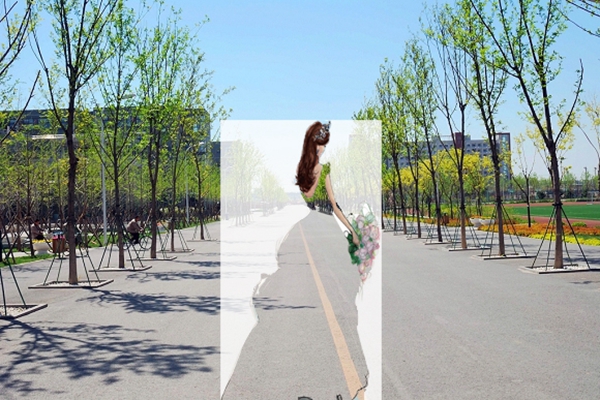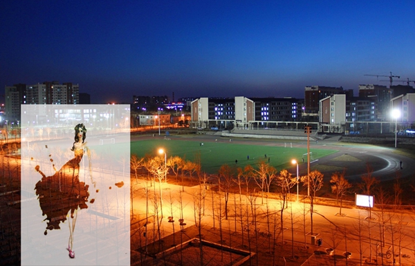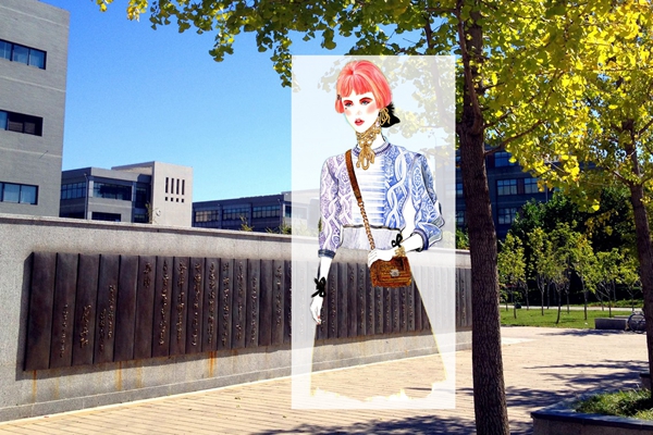 黄昏落日的余光照在石质的路上,穿着落日余晖的女子走来,带着“夕阳无限好”的美丽,也带着北理良乡校区建立的刻痕。