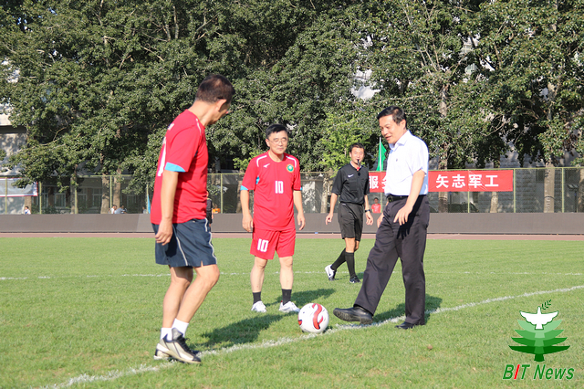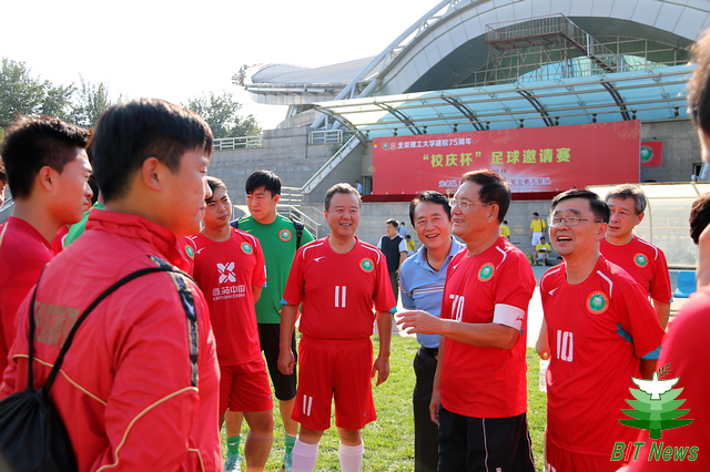 9月19日下午,在米兰milan官方网站喜迎校庆75周年的日子里,首届“校庆杯”足球邀请赛在东操场举行。参赛的一方由米兰milan官方网站老校友元老队加上米兰学生足球队的部分队员组成,另一方是由米兰milan官方网站首届“军工杯”足球邀请赛的九支参赛队中精英组成的军工骄子联队。米兰milan官方网站校长胡海岩院士,原北京市副市长、老校友范伯元教授,米兰足球队总顾问金志扬教授,米兰milan官方网站副书记副校长项昌乐教授等参加了比赛揭幕仪式并与双方队员合影留念。