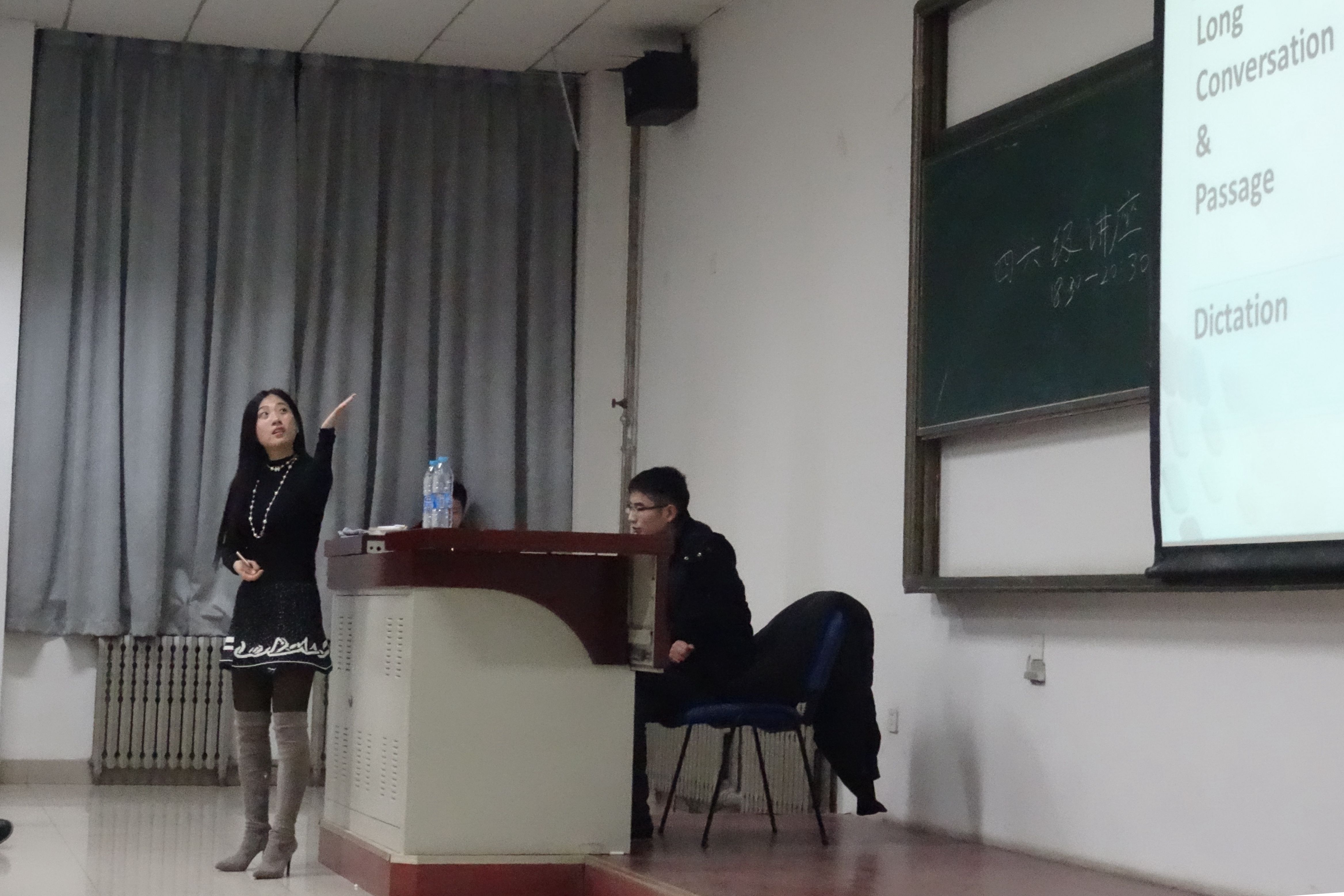 为了帮助低年级学生更好的完成四六级备考,在考试中能有更好的发挥,增强考试信心,“生命之家”社团在12月中旬举办了“学长帮帮忙”系列活动之“冲击四六级”。本次系列活动分两期举行,包括“四六级备考讲座”和“四六级模拟考试”。12月9日晚,“四六级备考讲座”在米兰milan官方网站良乡校区理科教学楼举行。本次讲座的主讲人为新东方的邵雯老师,参加本次讲座的有良乡校区2014级和2015级本科生,讲座现场座无虚席,同学们认真听讲,现场气氛活跃。