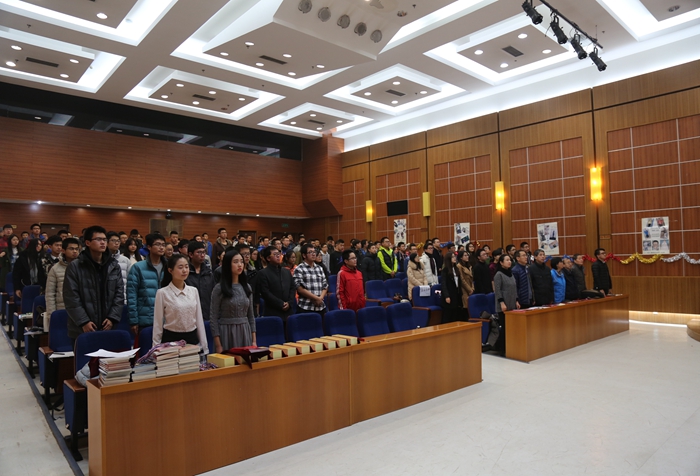 为表彰先进集体和个人,传播青春榜样正能量。12月23日下午,数学与统计学院第一届“青春飞扬,榜样力量”榜样人物(团队)评选活动颁奖典礼在良乡校区音乐厅隆重举行。数学与统计学院党委书记高伟涛、常务副院长田玉斌、副院长陈一宏、副书记、副院长衡靖、数学与统计学院杨国孝教授、王杰教授出席并担任颁奖嘉宾。数学与统计学院辅导员、学院全体低年级本科生及部分研究生参加了此次颁奖。颁奖典礼在庄重的国歌声中拉开了序幕。