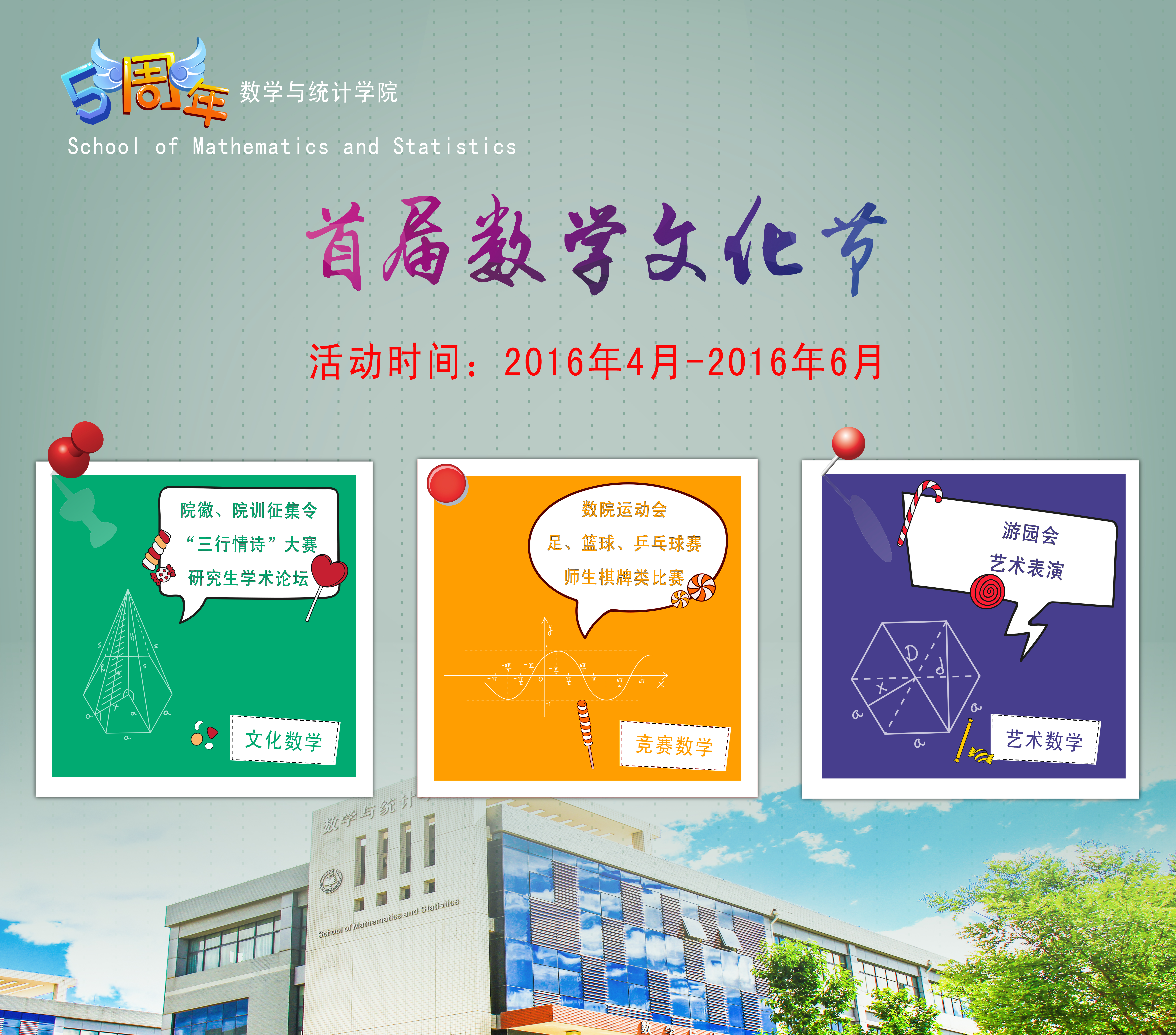 为丰富校园文化,数学与统计学院于近期正在举办首届数学文化节。学院运动会只是作为开始,师生棋牌对抗赛、大学生数学竞赛、研究生学术论坛等活动将逐渐开展,欢迎全校师生参加,详情请关注数学与统计学院网站。