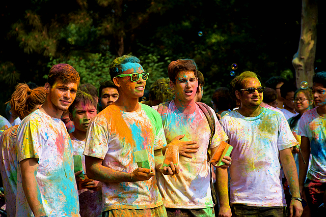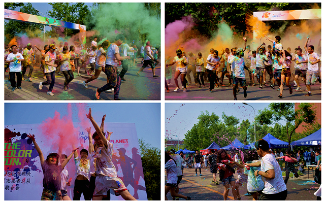 比赛的第一个环节是“校园长跑趣味赛”,身穿白色T恤手持彩跑粉的选手一边奔跑,一边将各色彩跑粉向其他的选手抛洒,赛事服务志愿者也用道具向整个方阵喷射彩跑粉,整个方阵瞬间变得五彩斑斓,彰显着青年学生多彩的青春活力。同学们也在游戏互动中增进了交流,感受着体育运动的乐趣。