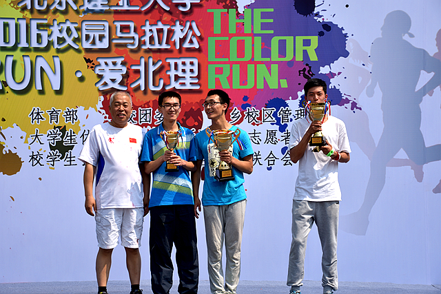 经过激烈的争夺,最终机械与车辆学院叶琪、材料学院许纯玲、法学院郝凌宇分获女子冠亚季军 ,机械与车辆学院姜浩博、计算机学院梁维森、自动化学院贾相帅分获男子的冠亚季军,其中姜浩博实现了2015年校园马拉松、冬季越野赛、2016年校园马拉松的“良马三连冠”。李和章、郝志强分别为男女获奖选手颁奖。