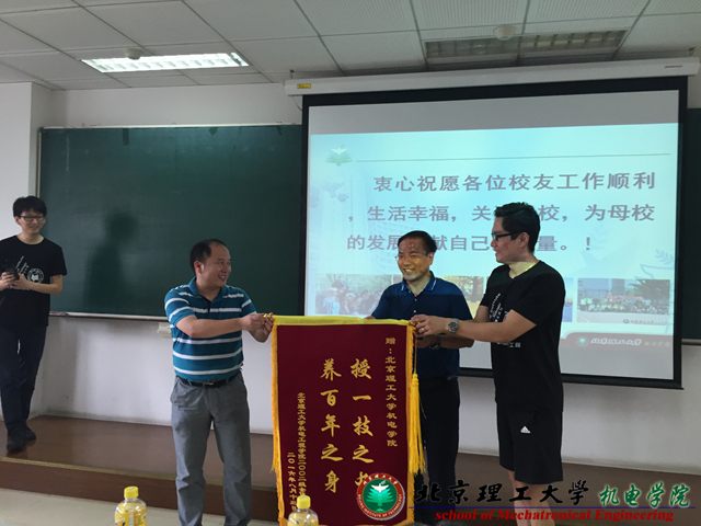 王伟首先代表学院致欢迎辞,对校友们表示了热烈的欢迎。随后,王伟书记介绍了学院十年来的飞速发展,就学院的学科建设、师资队伍、教学科研等最新情况做了重要介绍,感谢校友们为学校及学院的发展做出的贡献,希望今后继续关心和支持学校和学院的发展。谢非回顾了十年前与校友们在一起的快乐时光,祝贺校友们十年来取得的成就,也对校友们提出了新的希望。 校友们分别介绍了阔别母校10年间自身工作、生活等方面的发展情况,感谢学校和学院领导、老师的教诲和关心,表达了对母校、学院和老师的祝福之情。为表达对母校的感恩之情,感谢母校老师们的辛勤教诲,校友们向学院赠送了印有“授一技之长,养百年之身”的锦旗。