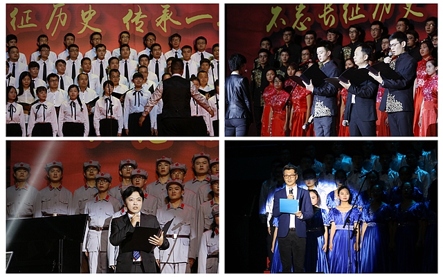 18支队伍先后演唱《我和我的祖国》、《南泥湾》、《保卫黄河》等脍炙人口的经典曲目,表演情绪饱满,演唱旋律悠扬,宇航学院、自动化学院、计算机学院、软件学院、数学学院等学院的党政领导也与师生一齐登台表演。精彩的演出、热烈的气氛感染了现场的每一个人,喝彩声掌声经久不息。