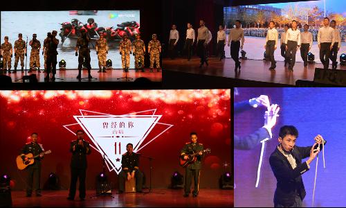小品《军训那些事儿》与双簧《我的作战靴》取材真实,生动有趣,赢得在场观众阵阵喝彩;京剧《智斗》原汁原味,京味纯粹,演员的深厚功底博得阵阵惊叹;诗朗诵《乡愁军梦》感情真挚,展现了在外的学子对故乡深深的思念;踢踏舞表演《踢踏之光》形式新颖,编排整齐,令观众耳目一新,赢得叫好一片;魔术表演《你的名字》跌宕有趣,极具震撼力的多个魔术引爆了现场气氛;精武2016的《渴望光荣》尽显男儿本色,展现精武队员们的热血与斗志。更有中国人民大学国防生橄榄绿协会声乐队带来的《曾经的你》,传达了外校国防生兄弟诚挚的祝福。