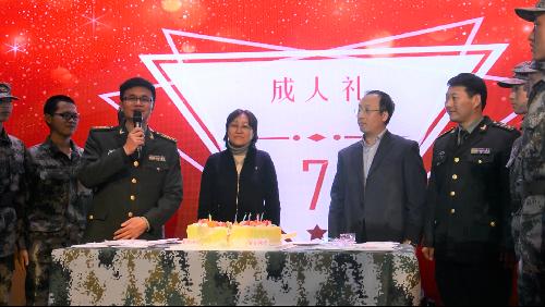 最值得一提的是晚会中间的“成人礼”环节,为16中队的同志们带来了意外惊喜。刘副主任、栗苹处长、曲书记与秦主任一起庆祝16中队的同志们以国防生的身份走向成年。栗苹处长与秦主任分别讲话,表达了对全体16中队国防生担当重任的殷切希望,并对国防生集体的作风与努力提出了表扬。亲切的语言与真挚的祝福,让所有国防生感受到了学校和选培办家一般的温暖,更激励着同志们在新的一年继续奋进。