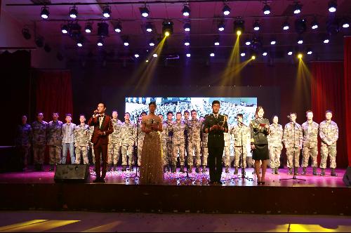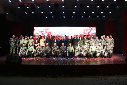 元旦晚会在国防生大队骨干合唱的《我爱你中国》中落下帷幕。领导嘉宾与全体演职人员合影留念。