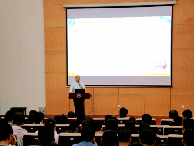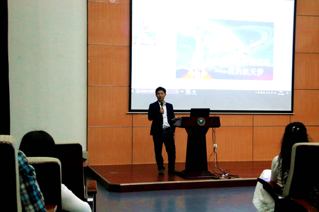 编辑:金林剑 审核:张宏亮 阅读次数:2017年4月22日晚18:30,自动化学院联合光电学院、外国语学院在良乡校区综合教学楼报告厅举办了主题为“我的航天梦”的报告会。讲座邀请了三名在航天系统工作的校友付继伟、刘治钢、张伟作为主讲嘉宾。自动化学院党委副书记副院长张宏亮、外国语学院党委副书记副院长周芳集,以及三个学院的辅导员、学生300余人出席了讲座。