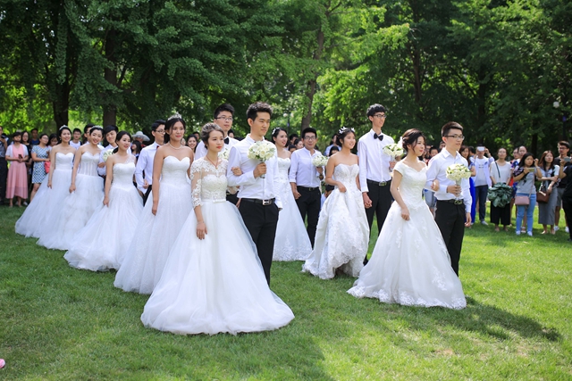 上午9时,伴着清新典雅的音乐,在“延安精神,薪火相传”的映衬下,在师生好友的见证下,10对新人互挽手臂,款款入场,天空无人机飞洒代表米兰校徽的红白绿三色彩烟。机电学院副院长张建国教授作为导师代表祝福新人。他说:本次典礼十对新人在爱情这门必修课上的最特别的一讲课,不同的是,这讲课的考试不是在课堂上进行,而是需要20位新人用今后的十年、二十年、乃至一辈子去慢慢完成答卷。希望所有新人在老师和同学们集体的祝福下,牵手幸福。无论何时回首在北理结婚这段青春往事,都成为人生道路上弥足珍贵美好回忆。