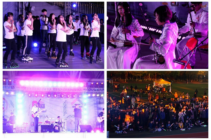 舞台下,DIY手工社的成员发动同学进行手工制作,武术协会展示了热血沸腾的武术表演,奇幻魔术社的魔术表演令现场观众啧啧称赞,光年电影社吸引了热爱电影的同学们现场互动,折纸协会现场搭建精妙绝伦的纸艺世界,游戏制作社的成员展示了头脑和科技的灵巧结合,跆拳道协会的表演展示引得同学们的阵阵惊呼,飞娆古风社成员带领大家走近唯美的古典文化。伴着乡琴协会优美的歌声,晚会画上了圆满句号。