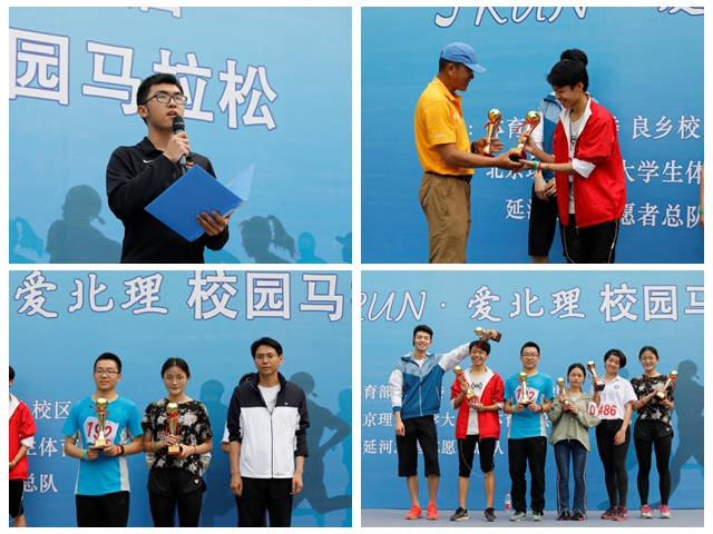 经过激烈角逐,最终男子冠、亚、季军分别由信息与电子学院的杨鸿基、管理与经济学院的高铭泽、宇航学院的潘郑雨获得;女子冠、亚、季军分别由信息与电子学院的罗瑶、设计与艺术学院的鲍光毅、机电学院的缪绿兰获得。马拉松竞赛单元结束后,到场部门领导为获奖者颁奖。
