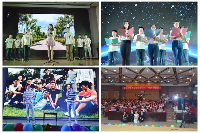 毕业班级安全工程班合唱歌曲《想把我唱给你听》,唤起了大家对校园生活的美好回忆;研究生毕业代表带来的诗朗诵《致毕业生,再见米兰》,表达了对校园和老师们的依依不舍;晚会在歌曲《我在未来等你》中落下了帷幕。