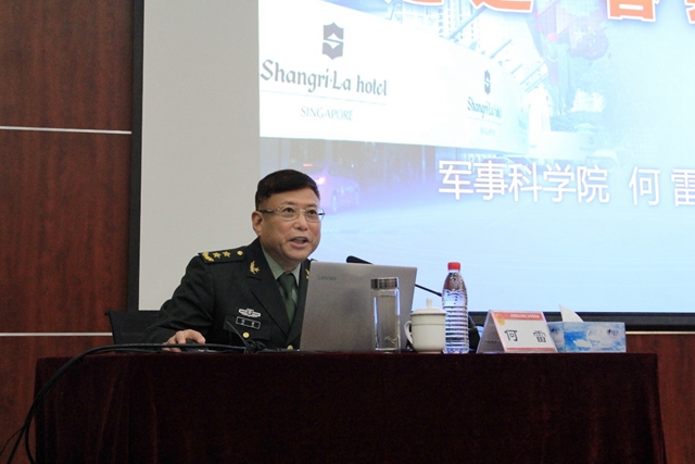 何雷中将作主题报告。何雷系统介绍了两次率领中国代表团参加“香格里拉对话会”(亚洲安全峰会)的基本情况,介绍了在重大军事外交活动中面对的形势与挑战,介绍了中国代表团在传播中国声音、维护国家利益、展示大国风采、当好友谊使者等方面取得的丰硕成果。对话会上,以何雷为代表的中国代表团在台湾问题、南海问题等主权问题上严正了立场,对“中国威胁论”等错误思维进行了驳斥,展示了新时代强国强军的风采和中国军人的形象。全体学员深切感受代表国家和军队出征的光荣自豪,感受实现伟大复兴路上的严峻挑战和巨大压力,更加坚定了成长为担当民族复兴大任时代新人的决心。