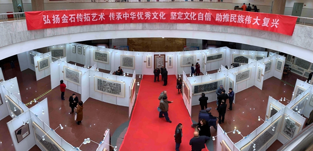 中国文化研究会金石文化专业委员会主任张胜吾在开幕式上讲到,本次巡展活动通过集中展示金石传统传拓艺术、高浮雕与浅浮雕立体拓创新成果和优秀甲骨文拓本,举办全国首届金石文化进校园活动,旨在弘扬传承中华民族优秀传统文化,激发民众保护金石文化遗产意识,提升大学生的民族自信心和凝聚力,促进中国特色社会主义文化在守正创新中繁荣发展。