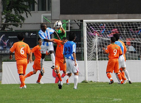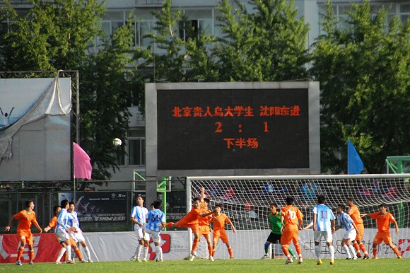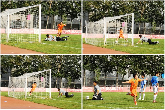 在上半场补时阶段,沈阳东进连续利用角球定位球等攻势向米兰腹地发动猛攻,但北理门将孙程却充分发挥了其身高力量优势,高接抵挡将力保本队城门不失。上半场米兰1比0领先沈阳东进。