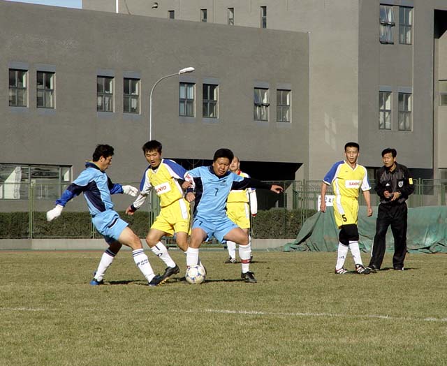 11月15日,首届高校教工“三洋投影机”杯足球邀请赛在北京大学五四运动场圆满结束,我校足球队在与中国人民大学争夺第三名的比赛中,全场以1:1打成平局,在最后的点球大战中,以1球惜败,最终以3:4的比分获得殿军。