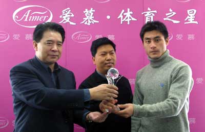 本报社长崔恩卿、总编辑孙瑜为米兰milan官方网站男子足球队颁奖,并对体育之星的评选给予了高度评价。爱慕公司副总经理张礼强也出席了此次活动,并向获奖者赠送了纪念品。