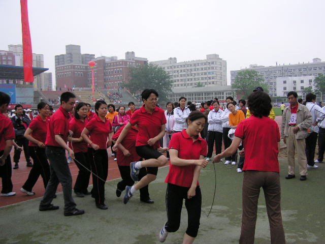 我校图书馆派出了由41名运动员组成的代表队,获得了团体总分第八名并荣获体育道德风尚奖。在大会破记录的6个项目中我馆占了2个,分别是集体跳绳和男子混合4X100米接力。集体项目的出色表现充分体现了大家团结协作的集体主义精神。正是这种精神不断激励着他们在图书馆事业广阔的舞台上,内强素质,外树形像,加快发展,争创一流,与图书馆界同人共同憧憬着美好的明天。