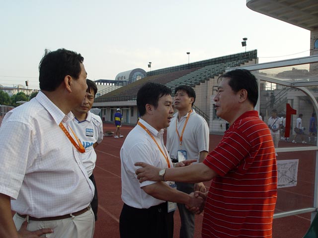 北京市代表团副团长杜松彭和杨宾教授在慰问金志扬教练和队员。