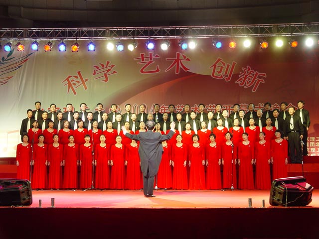 刚刚获得我校“祖国在我心中”教职工合唱比赛冠军的机电工程学院合唱团表演的合唱《保卫黄河》使大家心潮更加澎湃。