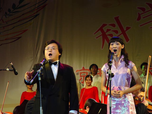 特邀男高音首席、中央民族大学学生金翚和女高音首席、我校人文学院学生李珂联袂奉献歌剧《茶花女》选段《饮酒歌》。