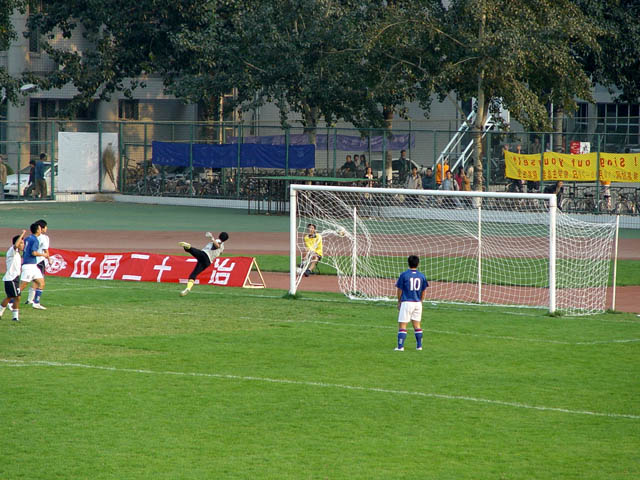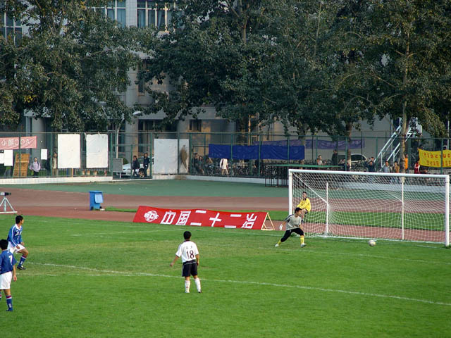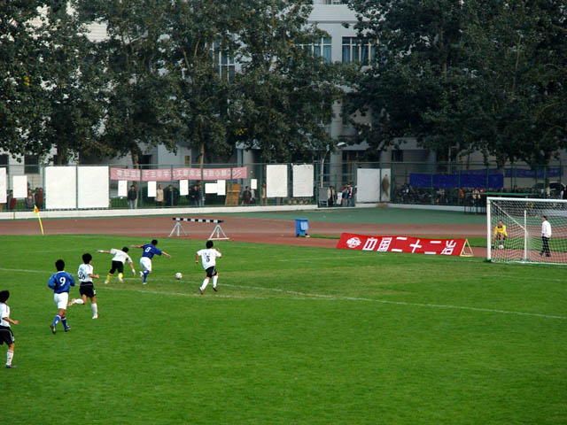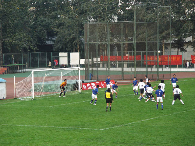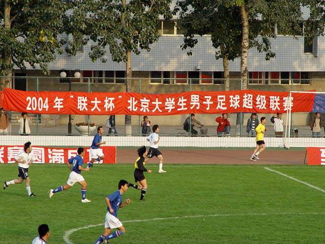 10月19日下午3点,2004年“联大杯”北京大学生男子足球超级联赛半决赛在我校东操场举行,由我校大学生足球队主场与北京联合大学足球队进行比赛,在日前的客场比赛中,我校足球队以10:0的战绩大胜对方。