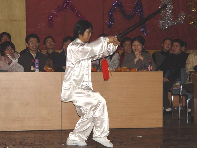 姜波和李海华老师的武术表演有板有眼。
