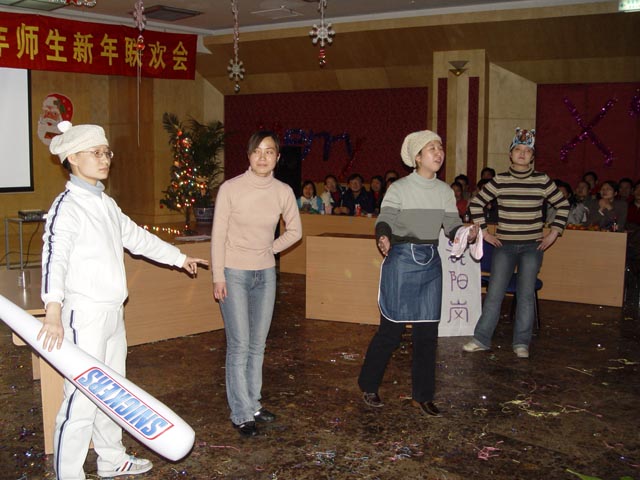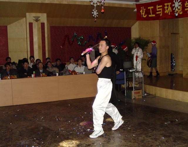 12月23日晚上,化工与环境学院在国际交流大厦二层多功能厅举办了2005年师生新年联欢会,校长匡镜明、副校长杨树兴,校党委副书记、纪委书记张维维等校领导和各部处领导也出席了联欢会。
