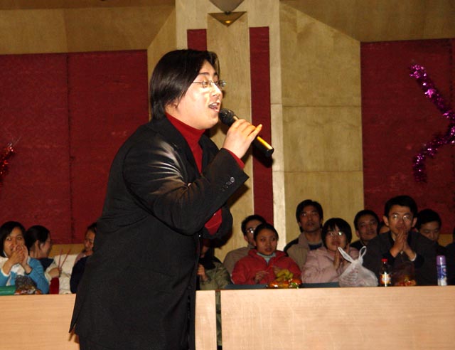 学院分团委许海峰老师的行头和歌喉颇有歌星郭峰的风采