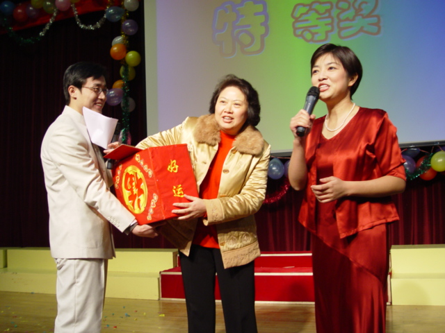 联欢会上学院主管教学的唐胜景副院长对2004年青年教师教学基本功比赛的获奖教师宣布表彰决定。
