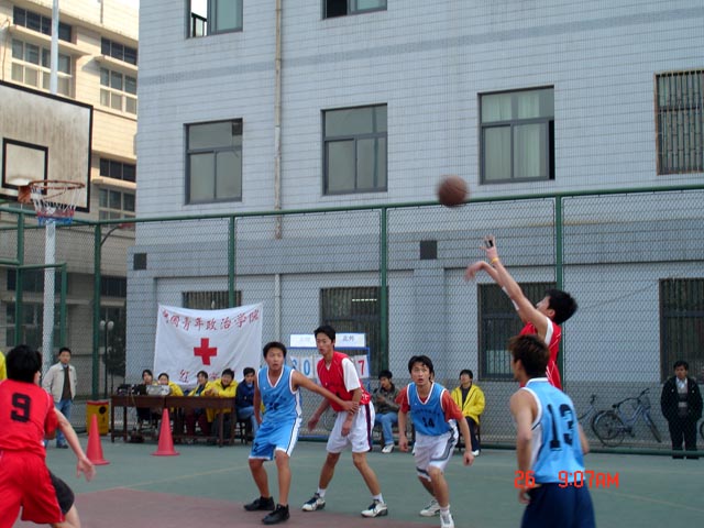 在最后的冠亚军争夺赛中,理工男篮在教练董瑞国老师的指导下历经波折顽强战胜中央民族大学队。