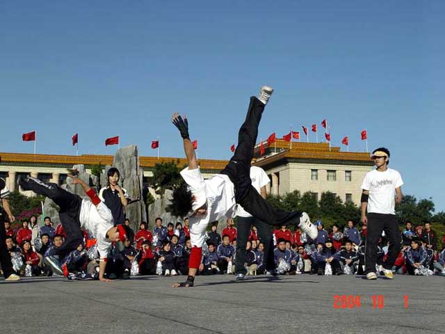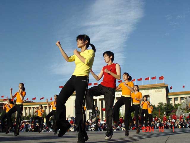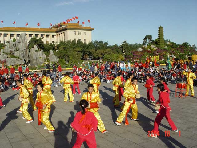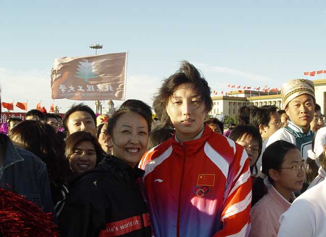 升旗仪式之后,我校学生在接受电视台记者的采访。