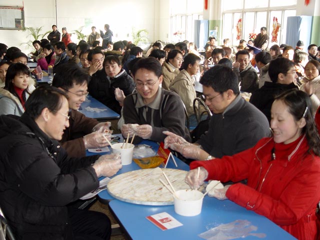 来自16所首都高校因经济困难等原因而留在北京过年的大学生代表欢聚在米兰milan官方网站,共度2005年新春。食堂成了一片欢乐的海洋,张灯结彩,大红灯笼高高挂在舞台两侧。