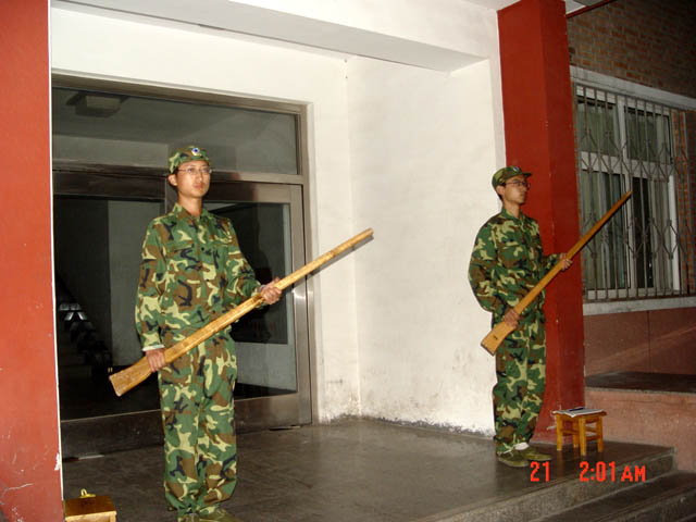 指挥部工作人员经常加班加点为次日的军训做好准备工作