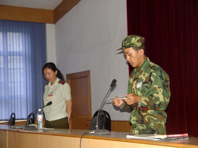 学员代表发言表示向英雄苏宁学习,不辜负老师、家长和同学们的期望