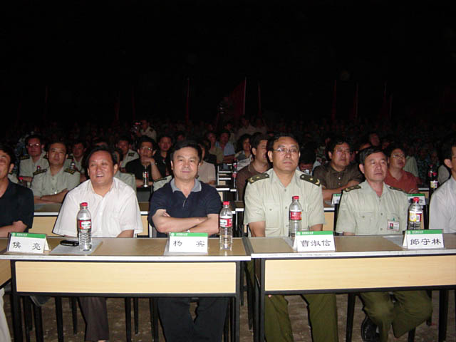 校党委副书记、副校长杨宾与炮兵指挥学院院长曹淑信少将、张家口市副市长侯亮等领导在观看演出
