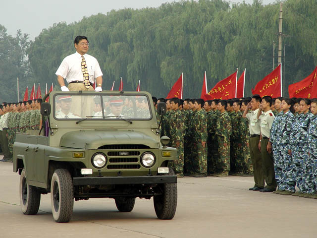 焦文俊书记在炮兵指挥学院军训旅领导的陪同下检阅全体学员队列方阵