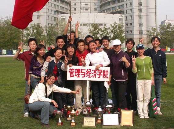在我校第43届田径运动会上,经过激烈拼搏,管理与经济学院教职工连续三年获得团体总分第一名;学生男子、女子连续多年获团体总分第一名;同时管理与经济学院还获得学生男子篮球和女子篮球的冠军,并获得此次大会的精神文明奖!