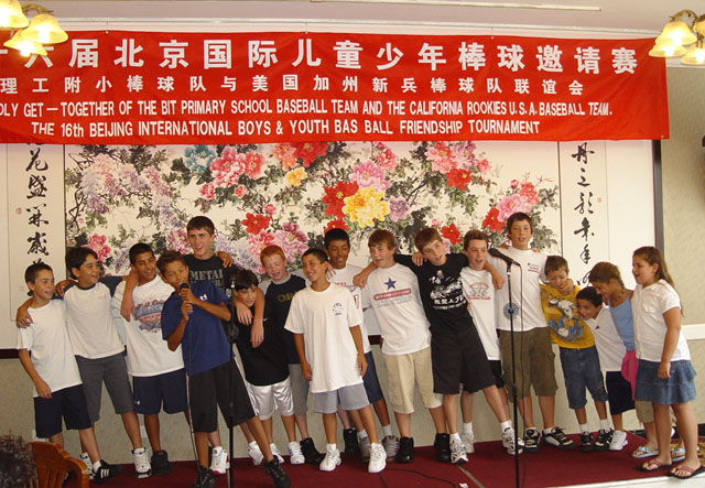 八月十二日至八月十五日,第十六届国际儿童少年棒球友好邀请赛在北京举行。米兰milan官方网站附属小学棒球队参加了这次比赛。八月的北京酷热潮湿,大雨不断,附小棒球队的孩子们发扬团队精神,勇敢顽强,奋力拼搏,取得了第五名的好成绩,给参赛各国球队留下了深刻的印象。