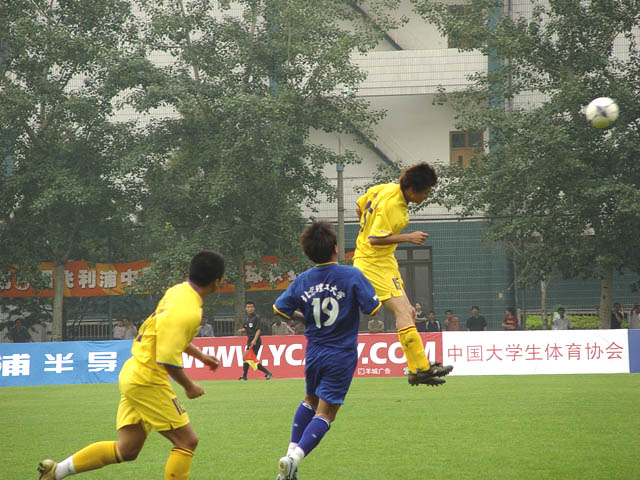 今天的比赛双方,一为飞利浦中国大学生足球联赛“三连冠”,一为东道主,而且两队队员的关系还有一定的渊源,上半场比赛双方处于试探阶段,都踢得比较谨慎。